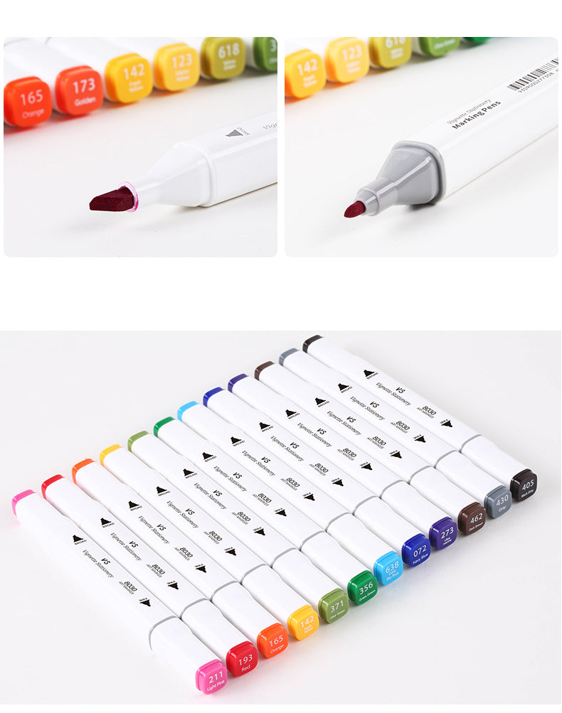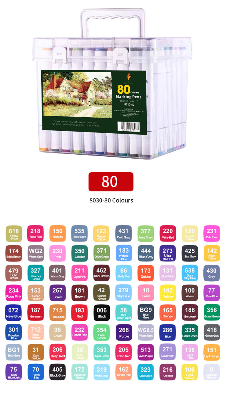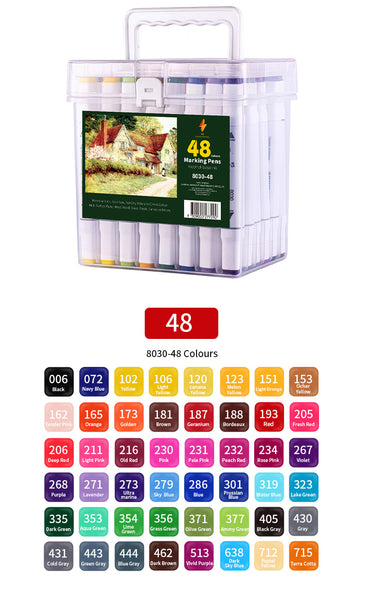 Ideal for animators, sketchers, designers and colouring book fans! Long lasting and fast-drying non-toxic alcohol based ink Vibrant colours built to last! High-quality tips on either end that won’t smudge or streak 5mm Width broad and 1mm width fine tips Easy colour identification with colour coded lids Easily transported with box High quality, fast-drying ink   Reach the perfect tonal grade and shade thanks to the premium quality fast-drying tips and ink, helping you to achieve definition perfection for your masterpiece, free of smudges and blotches. Colour and number coded No need to fumble around in search of colours, this set is conveniently colour coded to help you identify colours quicker so you don’t have to disrupt your drawing flow.