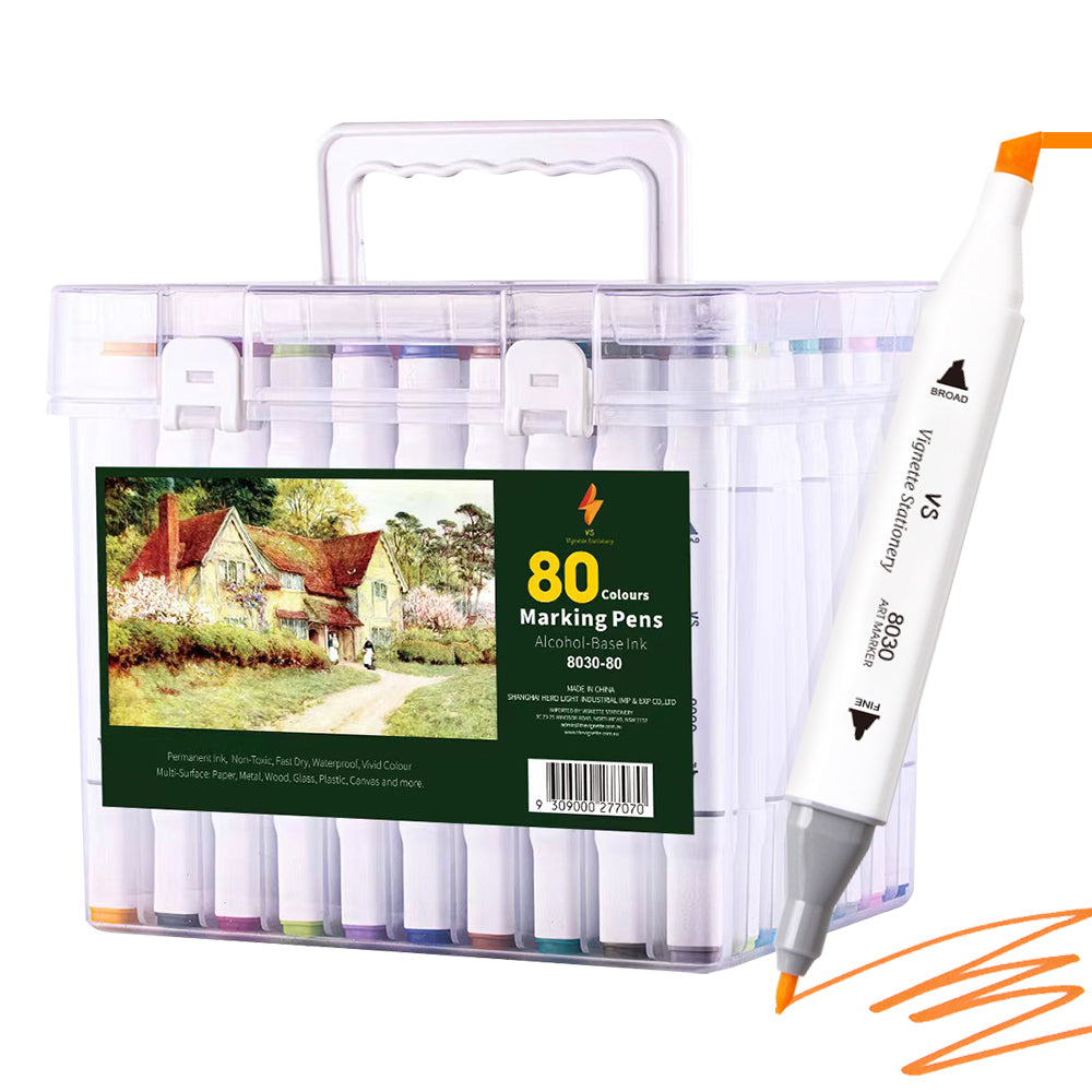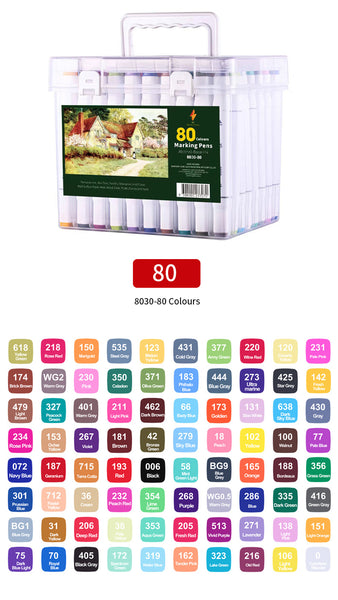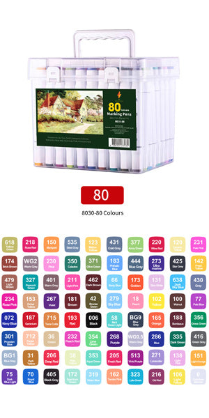 【Free Shipping】Colour Drawing Pens Dual Nibs Alcohol Base Colour Coding with Bucket (80)