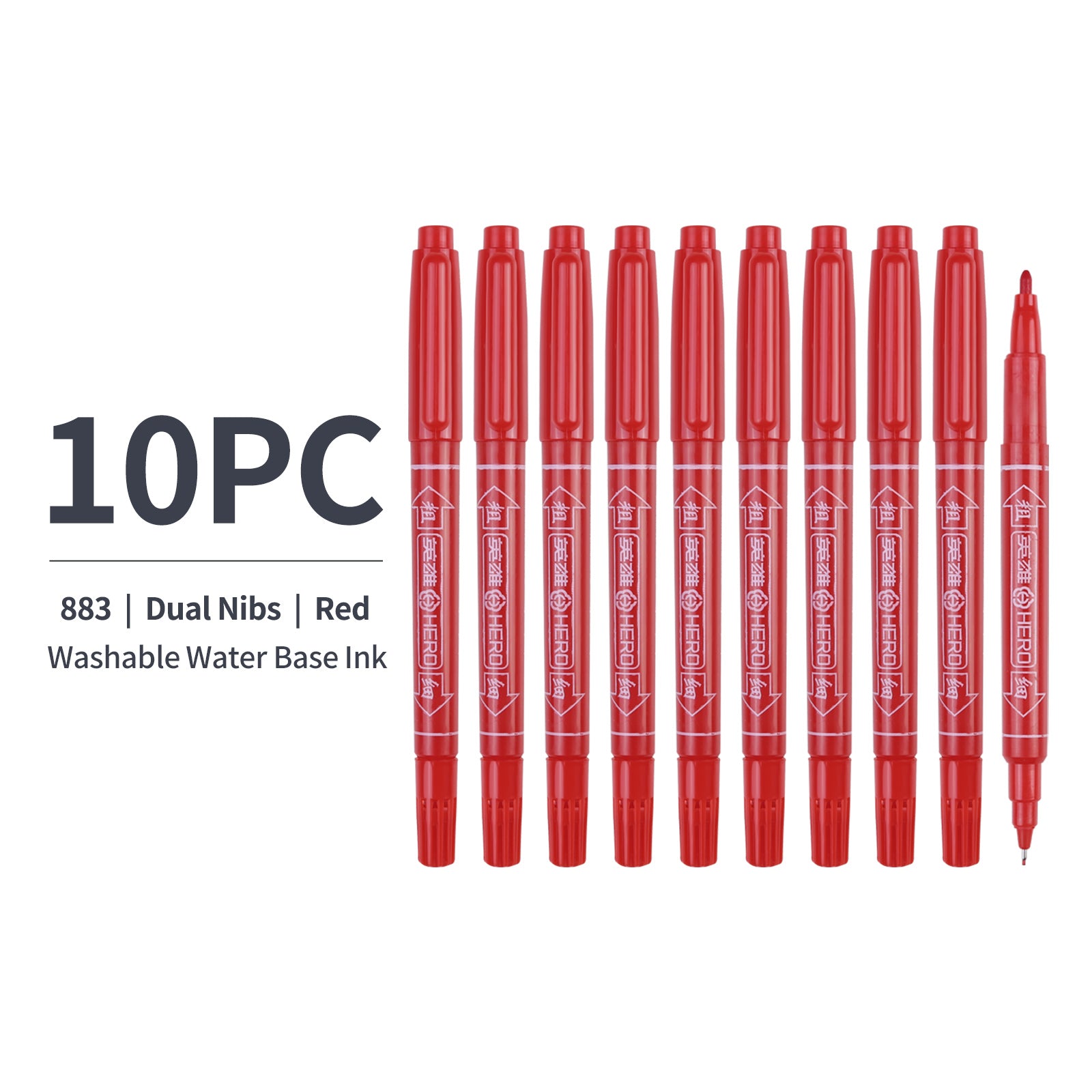 10x Dual Nibs Fineliner Water Base Red